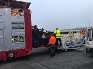 Five trucks gathered early in the morning at a collection stable in Zwolle. The drivers prepared the trucks by providing them with plenty of straw. After all documents had been prepared by an NVWA veterinarian, loading could begin.